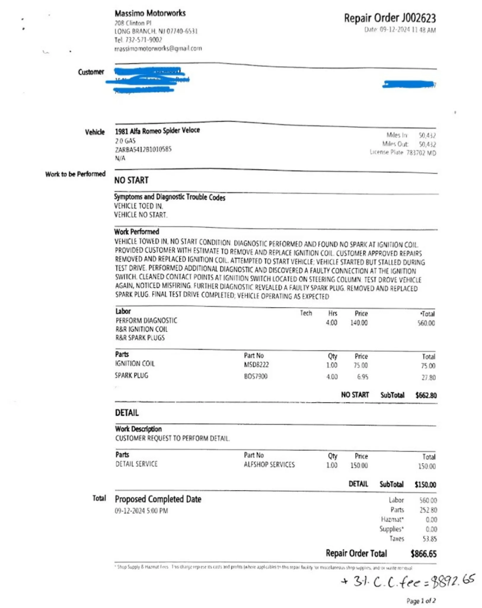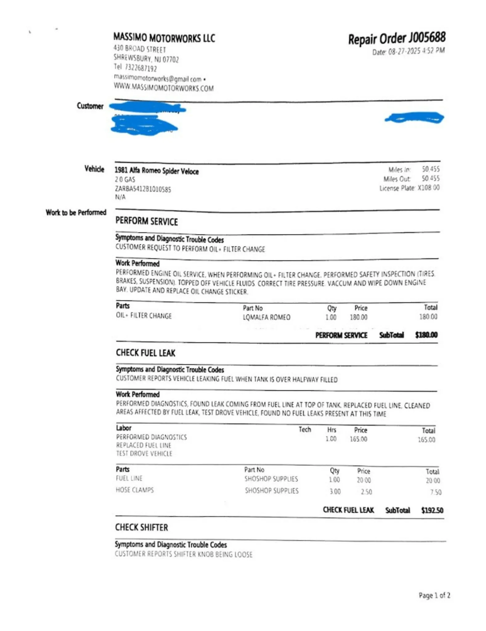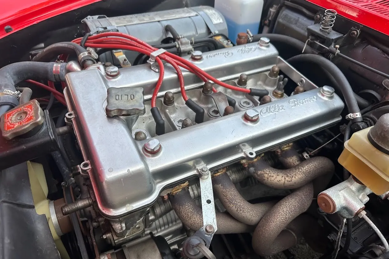 This 1981 Alfa Romeo 2000 Spider Veloce underwent a multi-year refurbishment under previous ownership and was acquired by the current owner in 2015. Finished in Rosso over Biscuit leather, the car is powered by a 2.0L twin-cam inline-four linked to a five-speed manual transmission and a limited-slip differential. Equipment includes a tan soft top as well as SPICA mechanical fuel injection, a Darstan tubular header, a Magnaflow muffler, KYB dampers, disc brakes, 14″ Campagnolo magnesium wheels, headlight covers, black bumpers, a cabin heater, a VG Hellebore steering wheel, and power windows. This Spider is offered at no reserve on dealer consignment in New Jersey with parts and service invoices and a clean Maryland title.