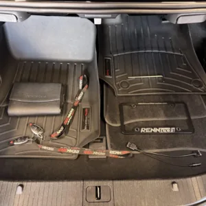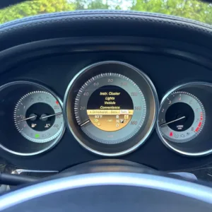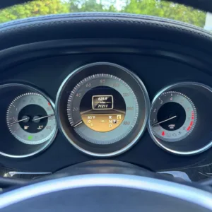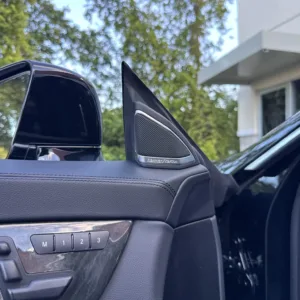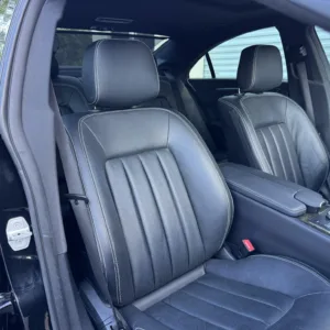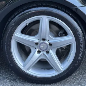 The 18″ five-spoke AMG wheels are mounted with Continental tires. The car is equipped with Electronic Stability Control as well as an AIRMATIC air suspension with four-wheel level control and an Adaptive Damping System (ADS). Stopping power is provided by cross-drilled front and ventilated rear rotors. Two tires were replaced in December 2024, and multiple wheels have curb damage.