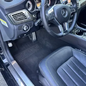 The heated and ventilated power-adjustable front seats are upholstered in black leather, while wood trim accents the cabin. Additional appointments include front seat position memory, Keyless Go, a rearview camera, dual-zone automatic climate control, ambient lighting, a Harman Kardon sound system, and COMAND infotainment with navigation.