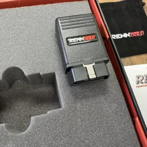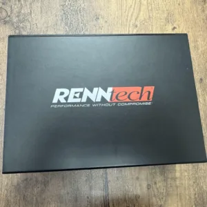 The car is finished in black and has bi-xenon headlights, a glass sunroof, heated side mirrors, a rear spoiler, RENNtech badging, and dual exhaust outlets.