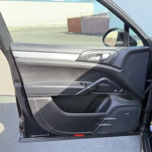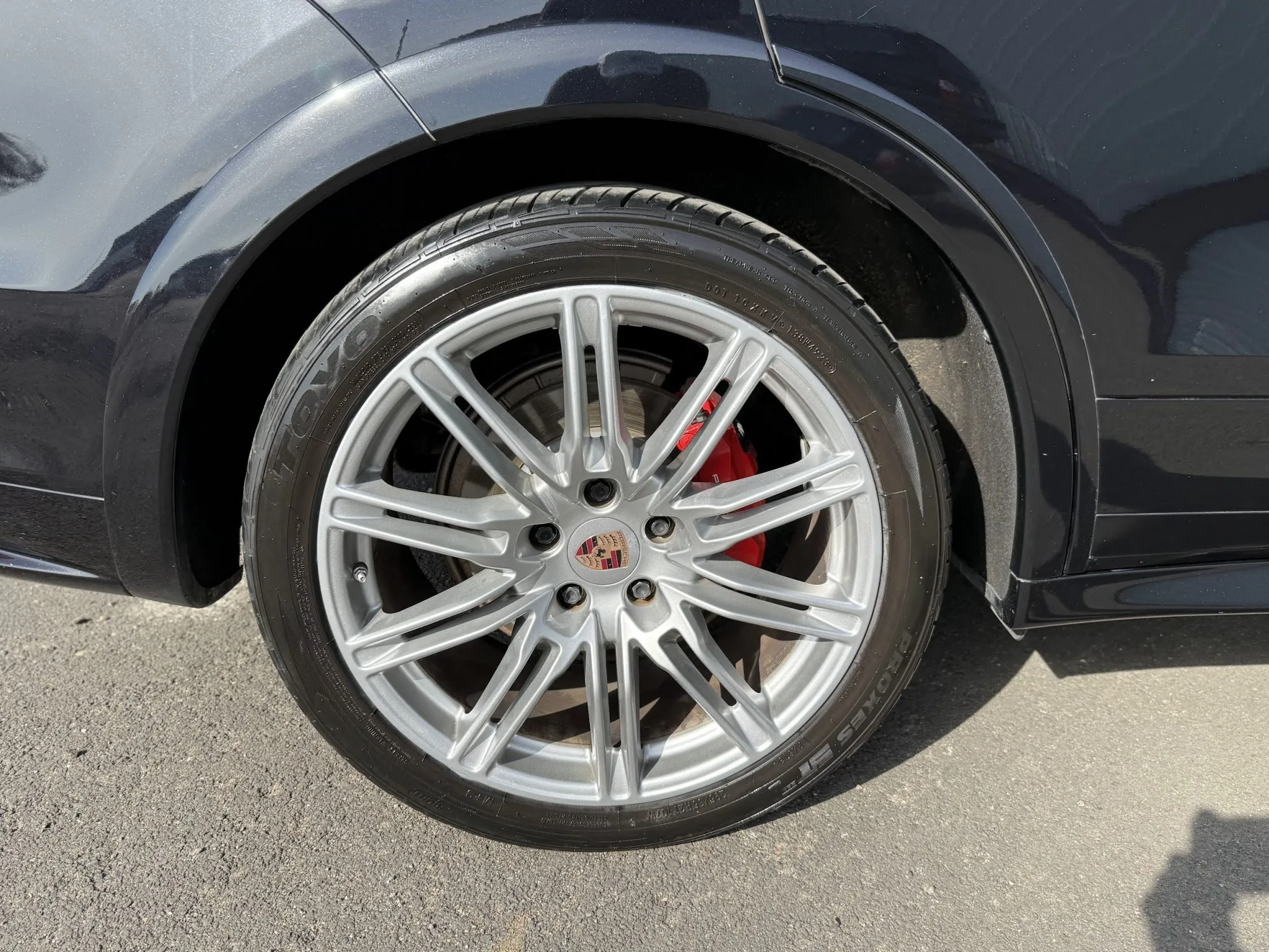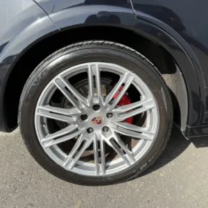 The 21″ Cayenne SportEdition alloy wheels are mounted with 295/35 Toyo Proxes ST III tires. The GTS sits 20mm lower than the standard S and features an adjustable air suspension with Porsche Active Suspension Management (PASM) and Porsche Traction Management (PTM) as standard. Stopping power is provided by red-finished six-piston front and four-piston rear brake calipers over ventilated rotors at each corner.