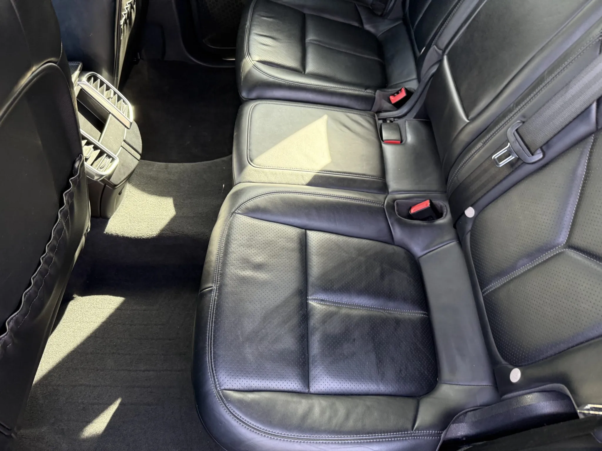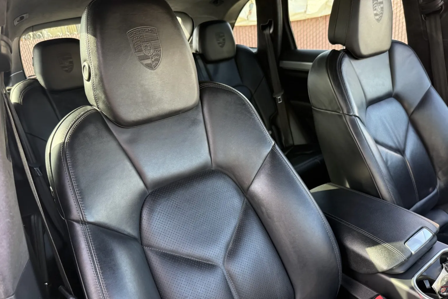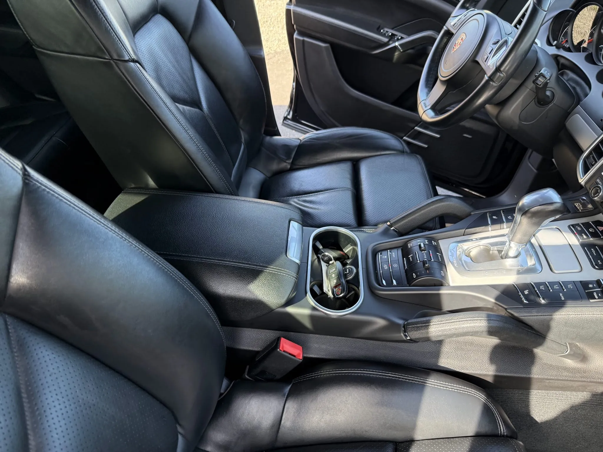The heated 14-way power-adjustable front seats and the rear bench have debossed Porsche crests on the headrests and are upholstered in Black leather. Amenities include a Bose surround-sound system, Porsche Entry & Drive, a back-up camera, Lane Change Assist (LCA), dual-zone automatic climate control, front-seat memory settings, and Porsche Communication Management (PCM) with navigation. Blower motor repairs are noted in the Carfax report in May 2022.