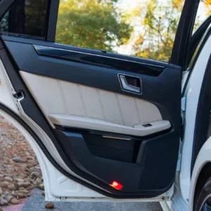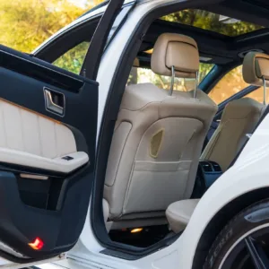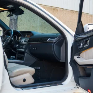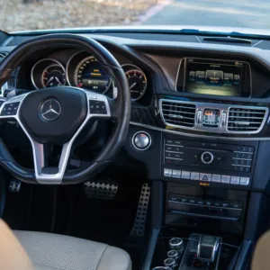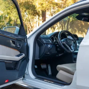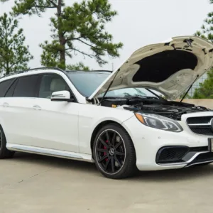 This 2016 Mercedes-AMG E63 S 4MATIC wagon has 54k miles, and it has spent most of its time registered in California. The car is finished in Polar White over beige leather and is powered by a twin-turbocharged 5.5-liter M157 V8 linked to a seven-speed MCT automatic transmission, a 4MATIC all-wheel-drive system, and a rear limited-slip differential. Equipment includes a panoramic sunroof, Parktronic parking sensors, black-finished 19″ AMG 10-spoke alloy wheels, a backup camera, heated and ventilated dynamic power-adjustable front seats, Blind Spot Monitoring, Lane Keep Assist, Keyless Go, Distronic Plus adaptive cruise control, a Harman Kardon sound system, dual-zone automatic climate control, illuminated door sills, and COMAND infotainment with navigation. This S212 AMG S wagon is now offered in Texas by the selling dealer with an owner’s manual, a clean Carfax report, and a clean Minnesota title