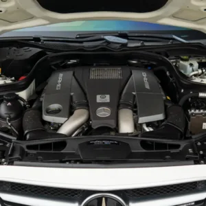 The twin-turbocharged 5.5-liter M157 V8 features direct injection as well as variable valve timing and was factory rated at 577 horsepower and 590 lb-ft of torque. The camshaft position sensor and radiator were replaced in 2022.