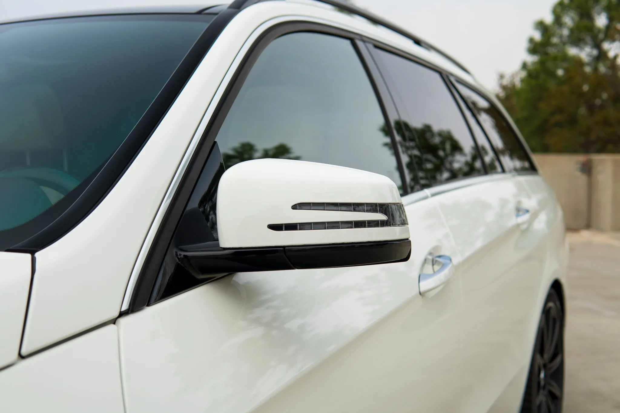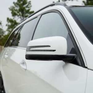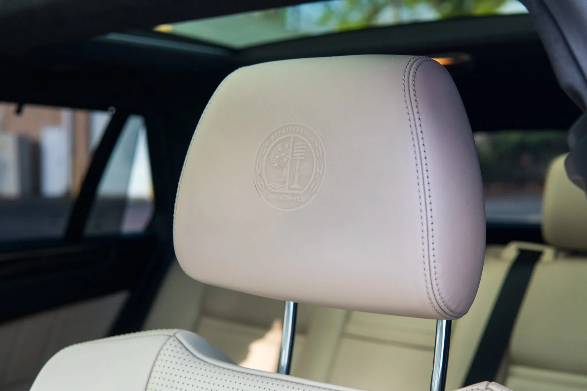 The car is finished in Polar White and features AMG-specific bodywork as well as LED headlights, a panoramic sunroof, roof rails, a rear window wiper, Parktronic parking sensors, a rear diffuser, and quad exhaust outlets.