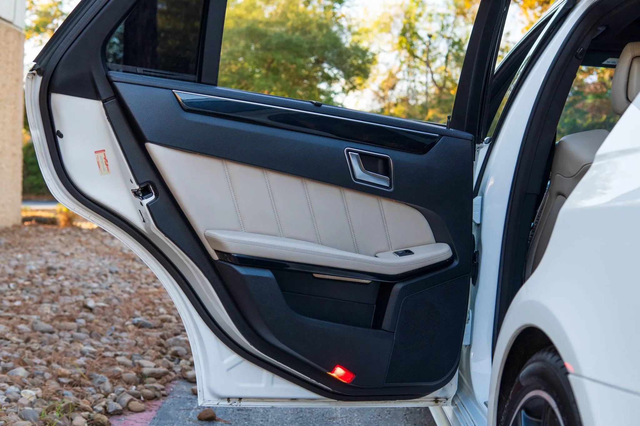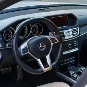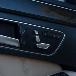 The cabin features heated and ventilated dynamic power-adjustable front seats trimmed in beige leather, which is complemented by Black Ash wood interior trim. Interior amenities include a backup camera, Blind Spot Monitoring, Lane Keep Assist, Keyless Go, Distronic Plus adaptive cruise control, a Harman Kardon sound system, dual-zone automatic climate control, illuminated door sills, and COMAND infotainment with navigation.