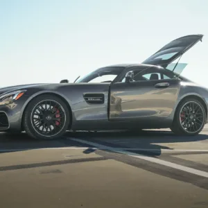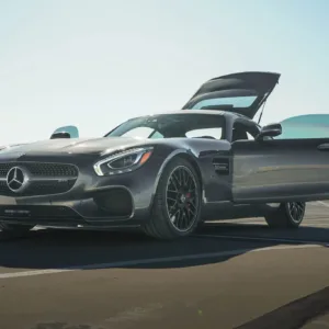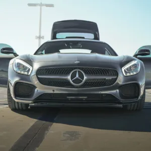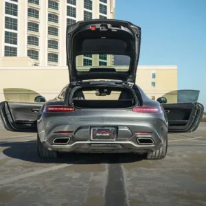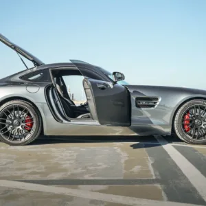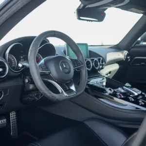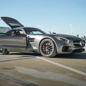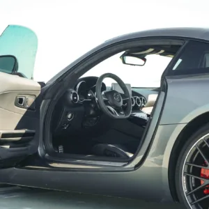 This 2017 Mercedes-AMG GT S is finished in Selenite Gray Metallic over Black Exclusive Nappa leather and features the AMG Dynamic Plus Package, which adds dynamic engine and transaxle mounts, a widened power band, and dynamically enhanced suspension and steering. Power is provided by a twin-turbocharged 4.0-liter V8 linked with a seven-speed dual-clutch automatic transaxle and an electronically controlled limited-slip differential. Other equipment includes heated AMG Performance seats, a Burmester sound system, an aftermarket front camera, and 19″ and 20″ AMG forged wheels. The car spent time in Texas and Arkansas before the current owner’s May 2023 acquisition, and they have since added approximately 8k of the 30k indicated miles. This AMG GT S is now offered on dealer consignment by a BaT Local Partner with July 2025 service records, a clean Carfax report, and a Mississippi title.