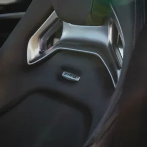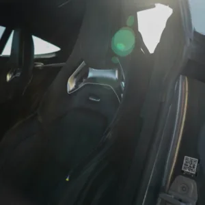 Power is sent to the rear wheels through a seven-speed dual-clutch automatic transaxle and an electronically controlled limited-slip differential. The car is equipped with a switchable exhaust system, and records indicate that the carbon-fiber driveshaft was replaced as part of a recall in July 2025.