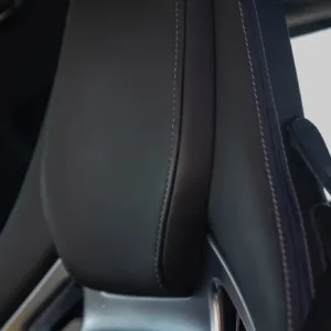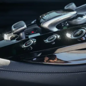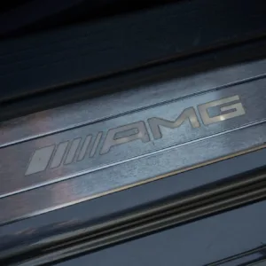 The heated power-adjustable AMG Performance seats are trimmed in Black Exclusive Nappa leather with lighter stitching, and they are complemented by piano black trim. Amenities include a Burmester surround-sound system, a rearview camera, Keyless Go, dual-zone automatic climate control, and COMAND infotainment with navigation.