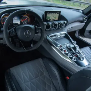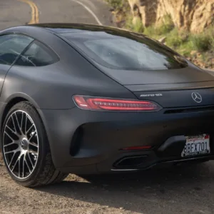 This 2018 Mercedes-AMG GT C is one of 500 produced worldwide to commemorate the 50th anniversary of AMG and was purchased new by the current owner. The car now has 18k miles and is powered by a twin-turbocharged 4.0-liter V8 paired with a seven-speed dual-clutch automatic transaxle. It is finished in Graphite Gray Magno over black and gray Exclusive Nappa leather, and features include an electronically controlled limited-slip differential, rear-axle steering, 19″ and 20″ AMG forged silver wheels, Keyless Go, Parktronic, a rearview camera, power-adjustable heated seats, a Burmester high-end sound system, and COMAND infotainment with navigation. This AMG GT C is now offered by the seller on behalf of the current owner with the owner’s manual, a battery tender, and a clean California title in the current owner’s name.