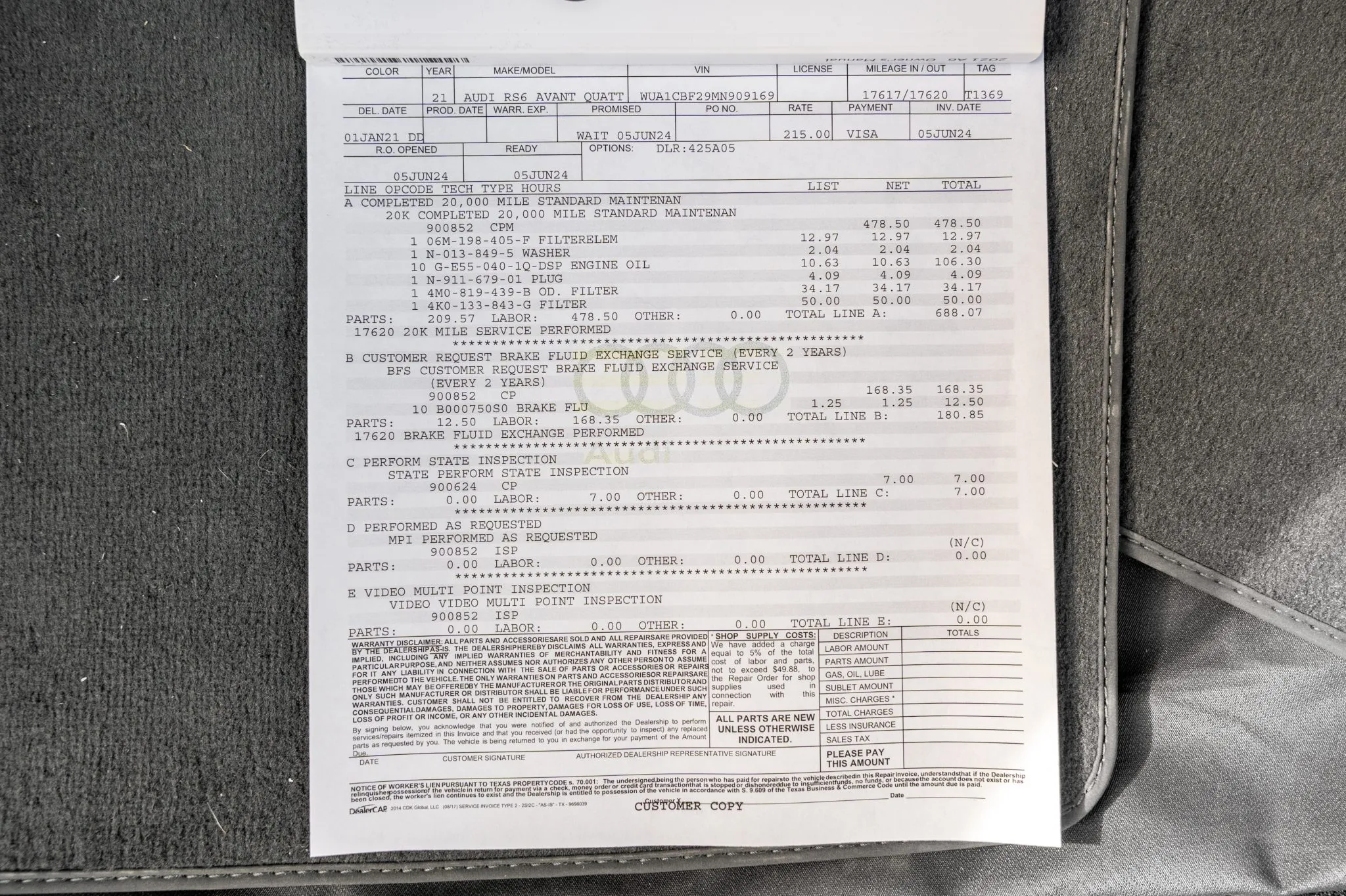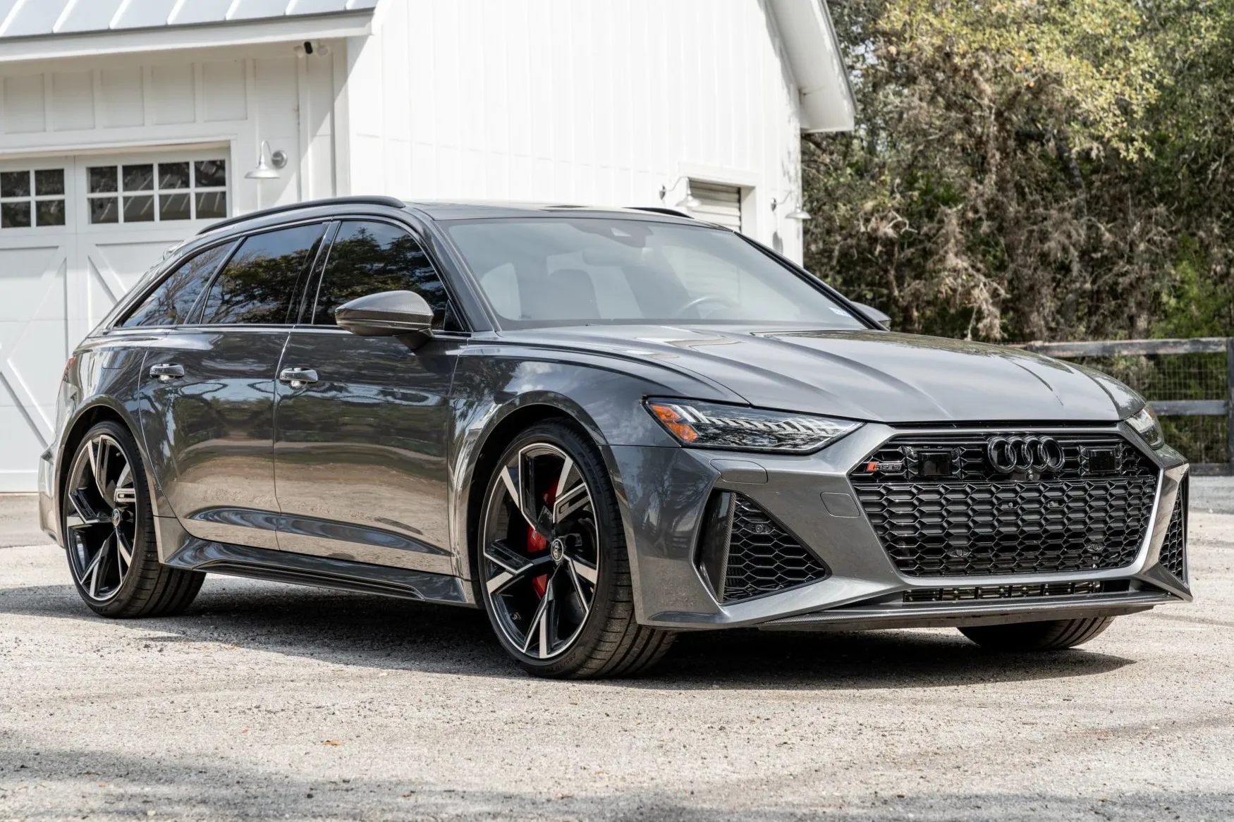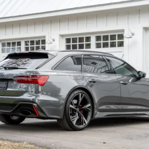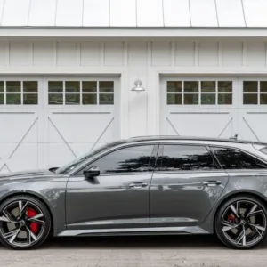This 2021 Audi RS6 Avant was produced for the Canadian market and was imported to the US in 2023 prior to being purchased by the seller during that year, and it now has 24k miles. It is powered by a twin-turbocharged 4.0L mild-hybrid V8 linked with an eight-speed automatic transaxle and Quattro all-wheel drive, and it is finished in Daytona Gray Pearl Effect over Cognac leather upholstery. Equipment includes the Carbon Optic Exterior and Executive packages as well as LED Matrix-Design Laser headlights, a sunroof, parking sensors, 22″ Audi Sport V-spoke wheels, heated and ventilated power-adjustable front RS sport seats, carbon-fiber interior trim, heated rear seats, a Bang & Olufsen 3D Advanced sound system, a head-up display, night-vision assist, a sport exhaust, a surround-view camera system, adaptive cruise control, and Audi MMI Touch infotainment with Navigation Plus. This C8 RS6 Avant is now offered with the owner’s manual, service records, an accident-free Carfax report, and a Texas title in the seller’s name.