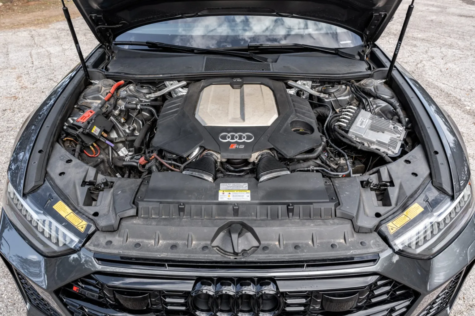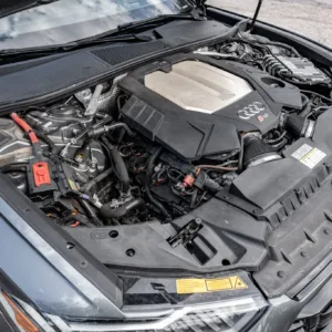 The twin-turbocharged 4.0-liter V8 was factory rated at 591 horsepower and 590 lb-ft of torque. The engine features a 48-volt mild-hybrid system and cylinder deactivation. An oil change was performed in May 2025, and the alternator was replaced in June 2025.