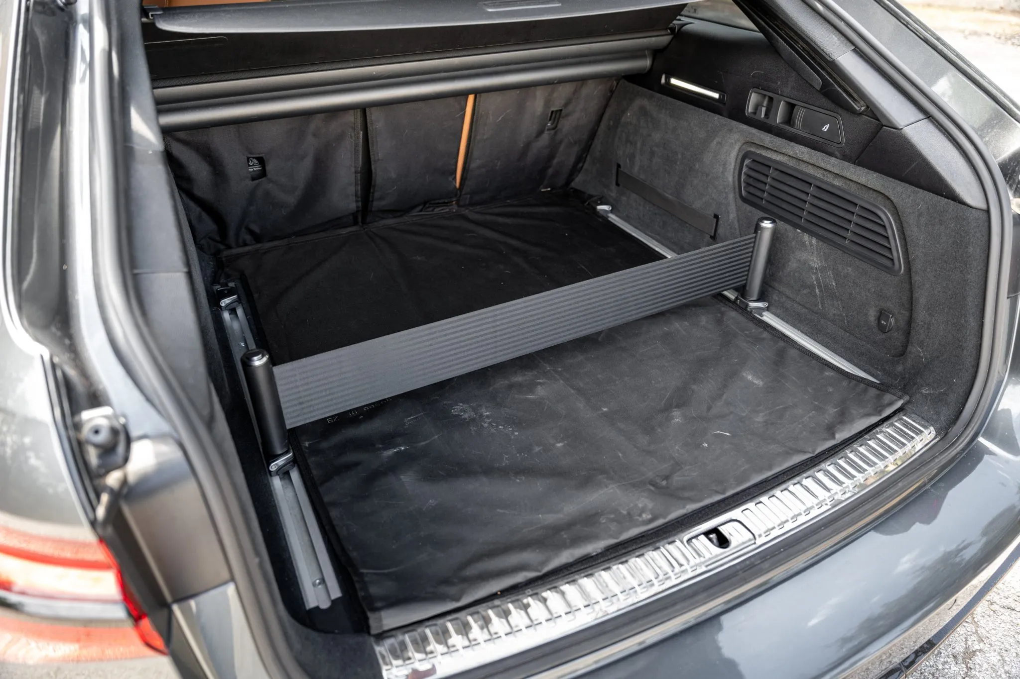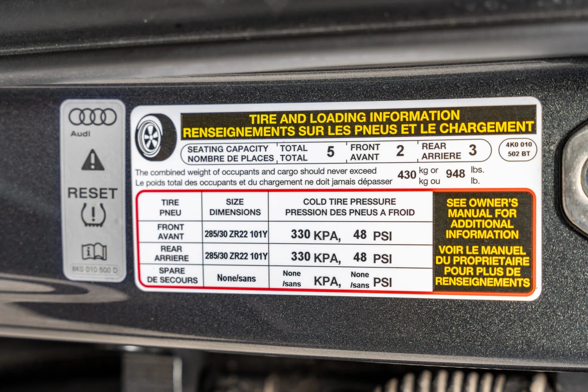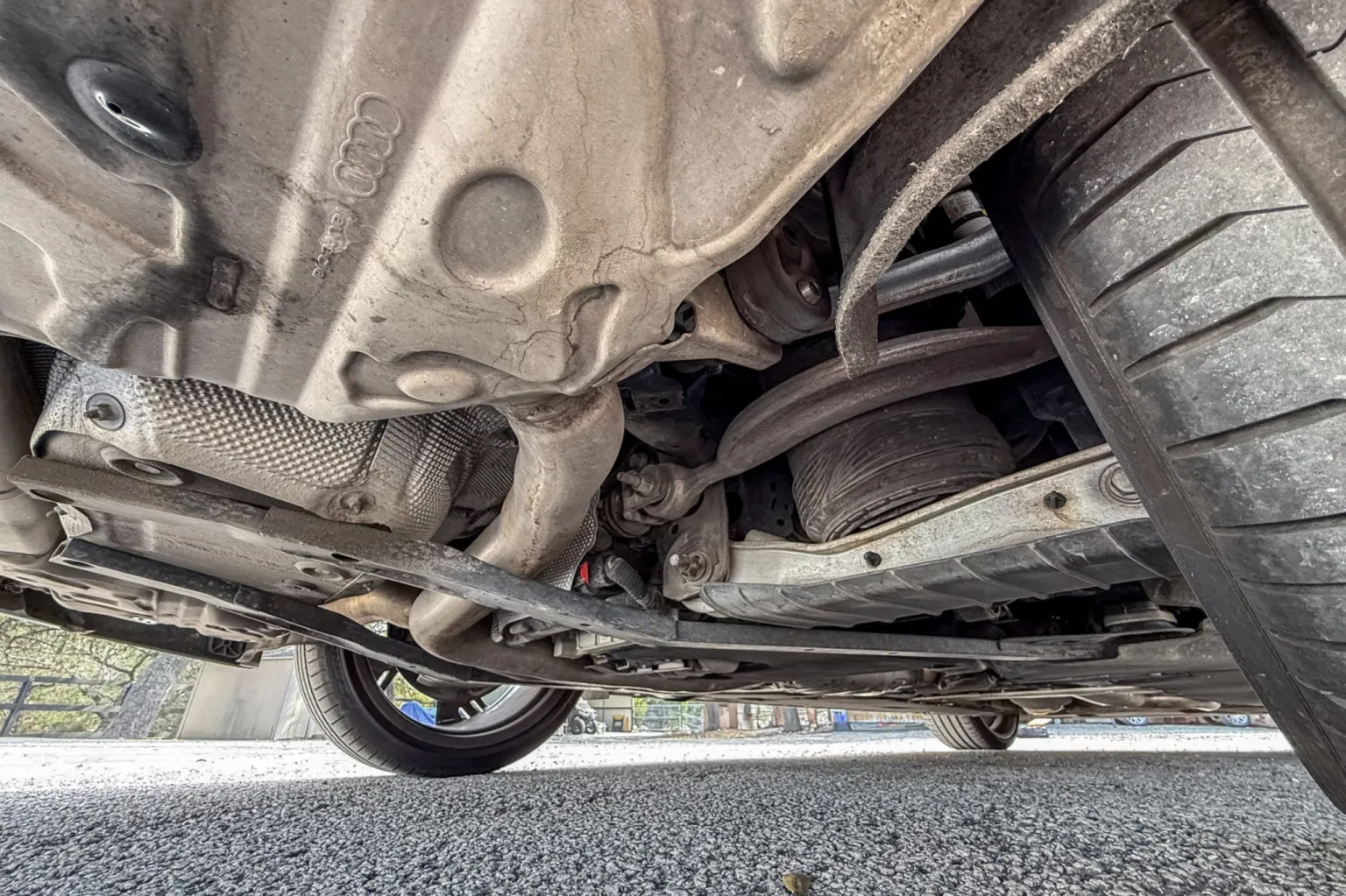 Power is routed to all four wheels through an eight-speed Tiptronic automatic transaxle and a Quattro all-wheel-drive system with a sport rear differential. The car is equipped with a sport exhaust system.