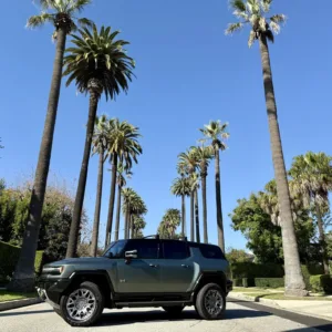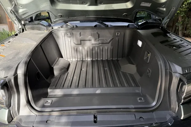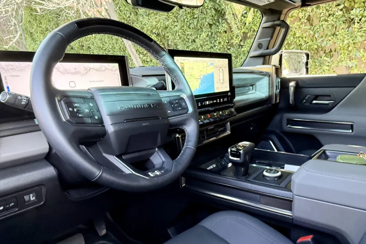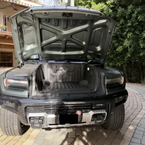 A single-motor front-drive unit with a 13.3:1 fixed gear ratio is housed with an electronic locking differential, while a rear-axle unit with a fixed 10.5:1 ratio incorporates two motors that can be synchronized to simulate a locking differential. Factory-rated output was 830 horsepower. The Ultium battery pack is composed of a 20-cell, 170.0-kWh liquid-cooled lithium-ion battery.