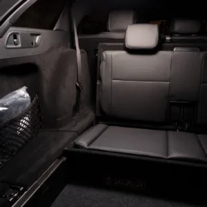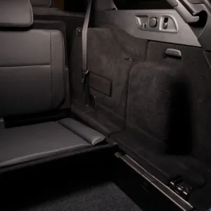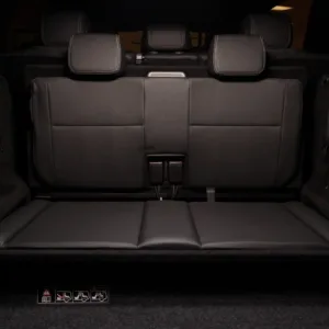 The cargo area features a rear-facing bench seat that folds flat into the floor.