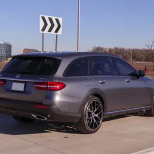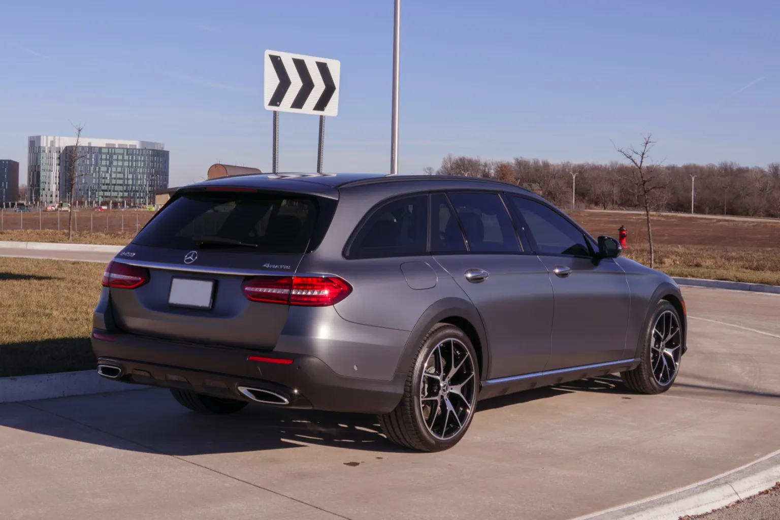 This 2021 Mercedes-Benz E450 4MATIC is an All-Terrain wagon that was purchased new by the selling dealer, who used it as their personal car, and it was ordered with over $21k in options including the Premium, Driver Assistance, Acoustic Comfort, Warmth & Comfort, Exterior Lighting, Sun Protection, and Night packages, which together provided multiple the LED Intelligent Light System, Parktronic parking sensors, a Burmester surround sound system, heated armrests, various driver aids, and high-gloss black accents for the Designo Selenite Gray Magno-finished bodywork. The car is powered by a mild-hybrid turbocharged 3.0-liter inline-six that drives all four wheels through a nine-speed automatic transmission, and further options include 20″ AMG twin five-spoke wheels, a panoramic sunroof, soft-close doors, a head-up display, three-zone automatic climate control, heated and ventilated front seats, and heated rear seats. This W213 E450 4MATIC All-Terrain wagon has 25k miles and is now offered in Missouri by the selling dealer with a window sticker, a clean Carfax report, and a clean Montana title.