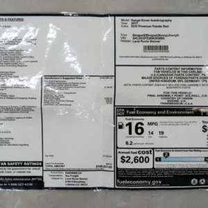 The window sticker shows initial delivery to Land Rover Denver in Colorado, along with factory colors, equipment, options, and a total price of $148,831.