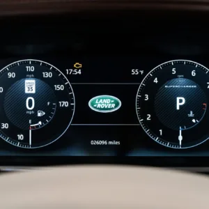 The 22″ Style 707 alloy wheels are mounted with Michelin tires. Equipment includes an electronic air suspension with variable ride height as well as a terrain response system, Adaptive Dynamics stability control, Hill Descent Control (HDC), Electronic Traction Control (ETC), and ventilated discs at each corner.