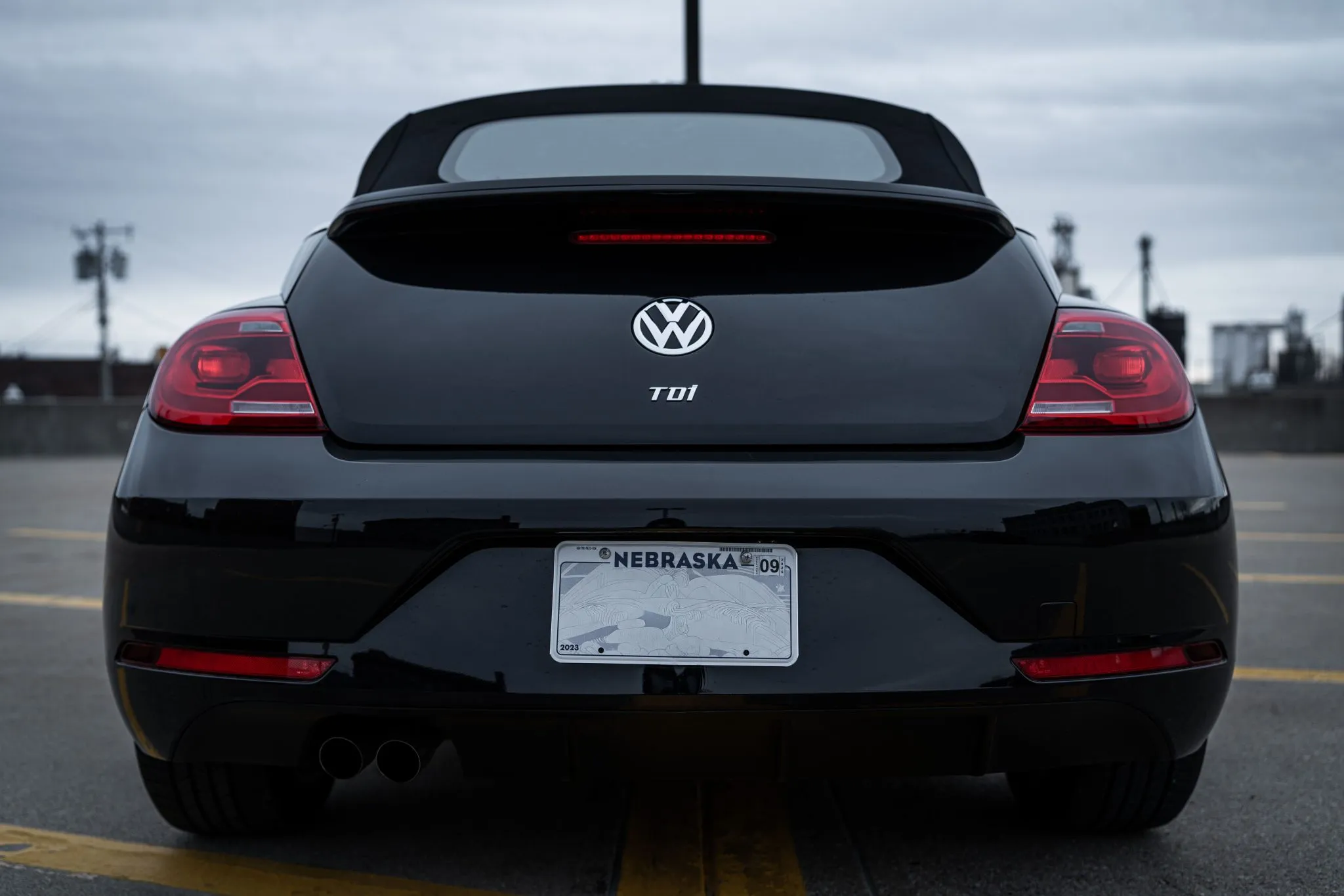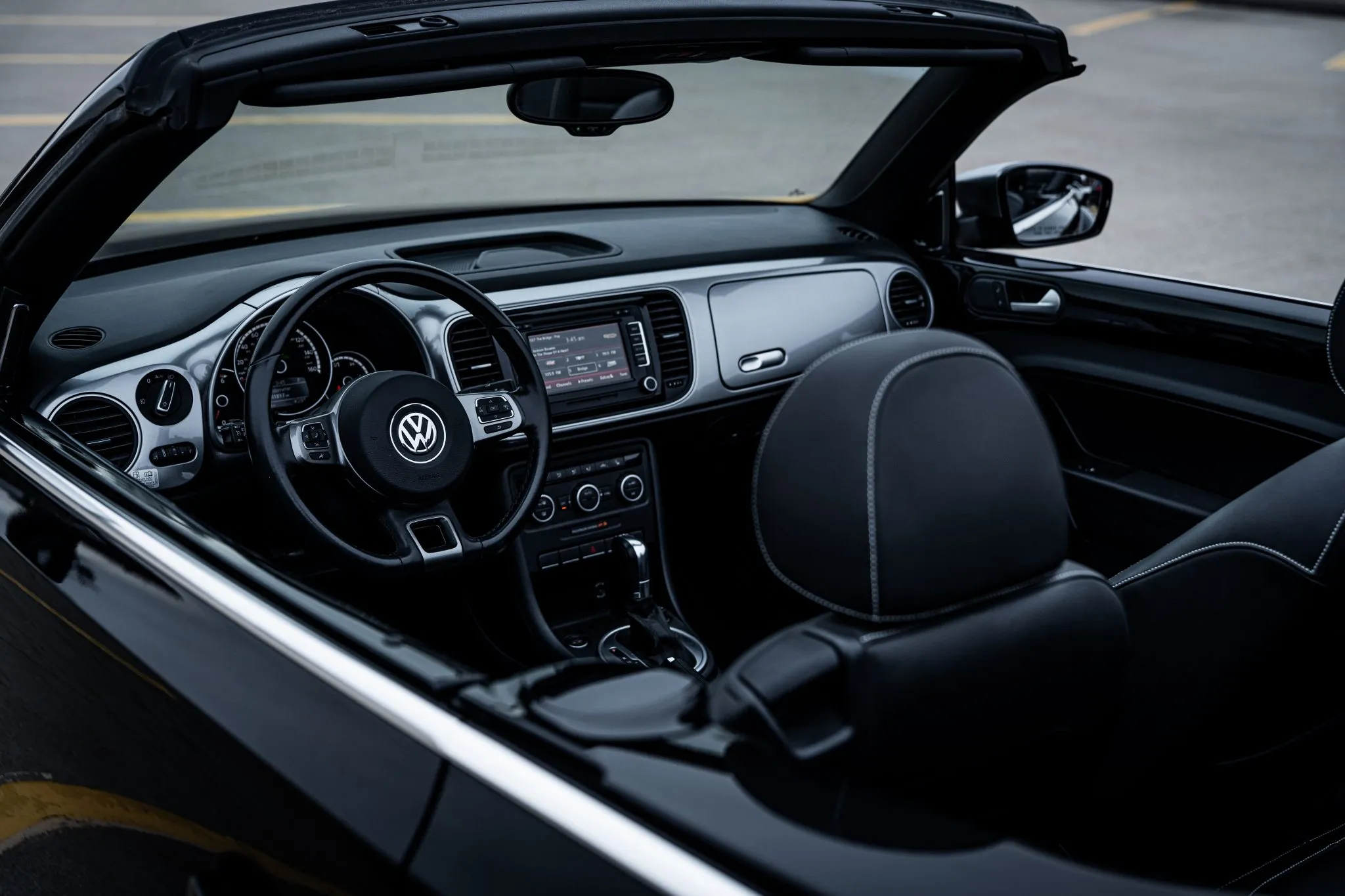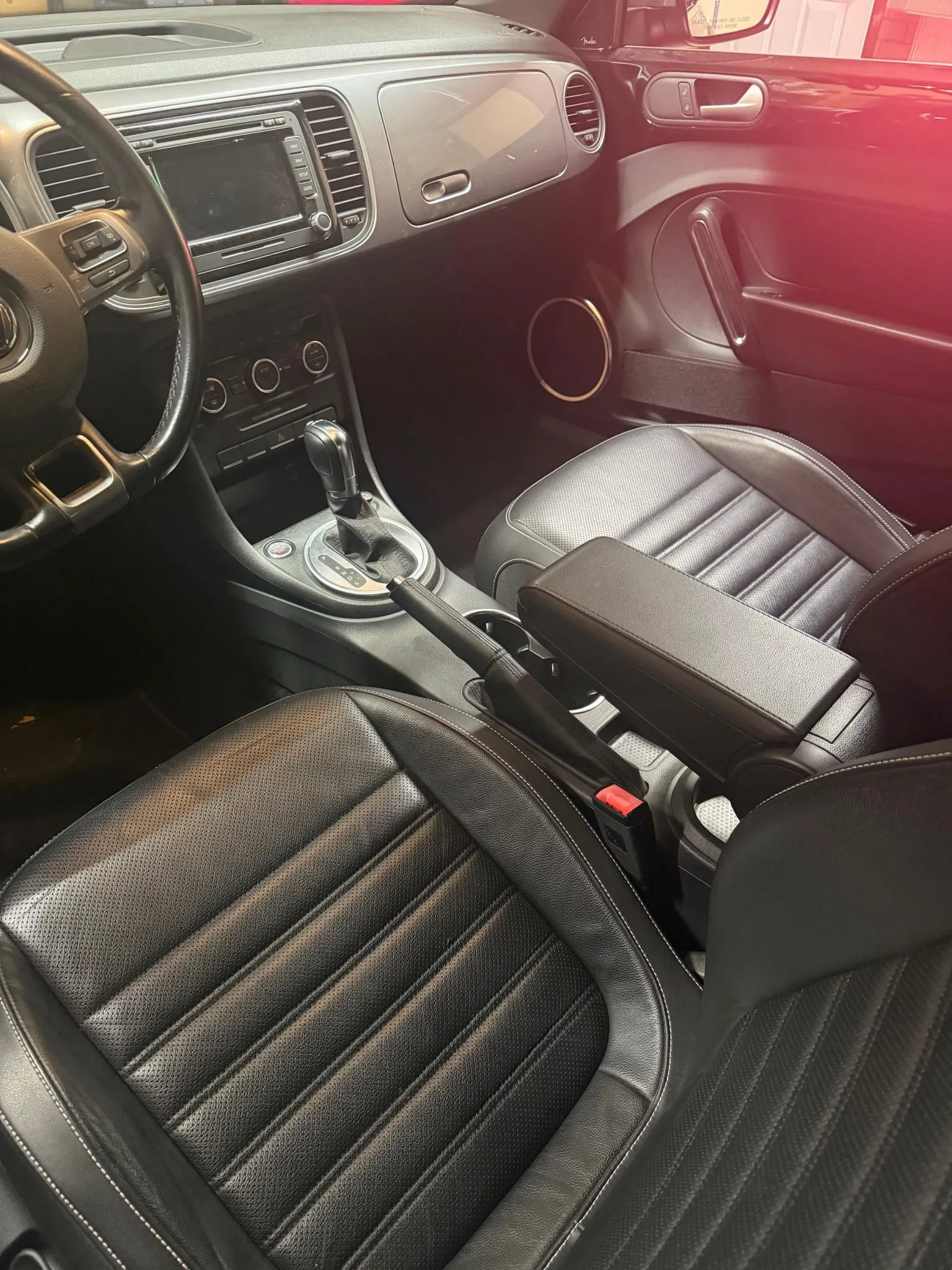 This 2014 Volkswagen Beetle TDI convertible has 42k miles, and it is powered by a 2.0-liter turbodiesel inline-four paired with a six-speed DSG dual-clutch automatic transaxle. The Black-finished bodywork has a power-operated black soft top, a rear spoiler, and xenon headlights, while the black leather-trimmed cabin contains heated front seats, a Käferfach glovebox, a Premium VIII touchscreen infotainment system, navigation, a Fender sound system, and automatic climate control. The car also has 18″ Disc alloy wheels, Electronic Differential Lock, and Intelligent Crash Response System. Purchased in 2023 by the seller, this A5 Beetle convertible is now offered with a clean Carfax report and a clean Nebraska.