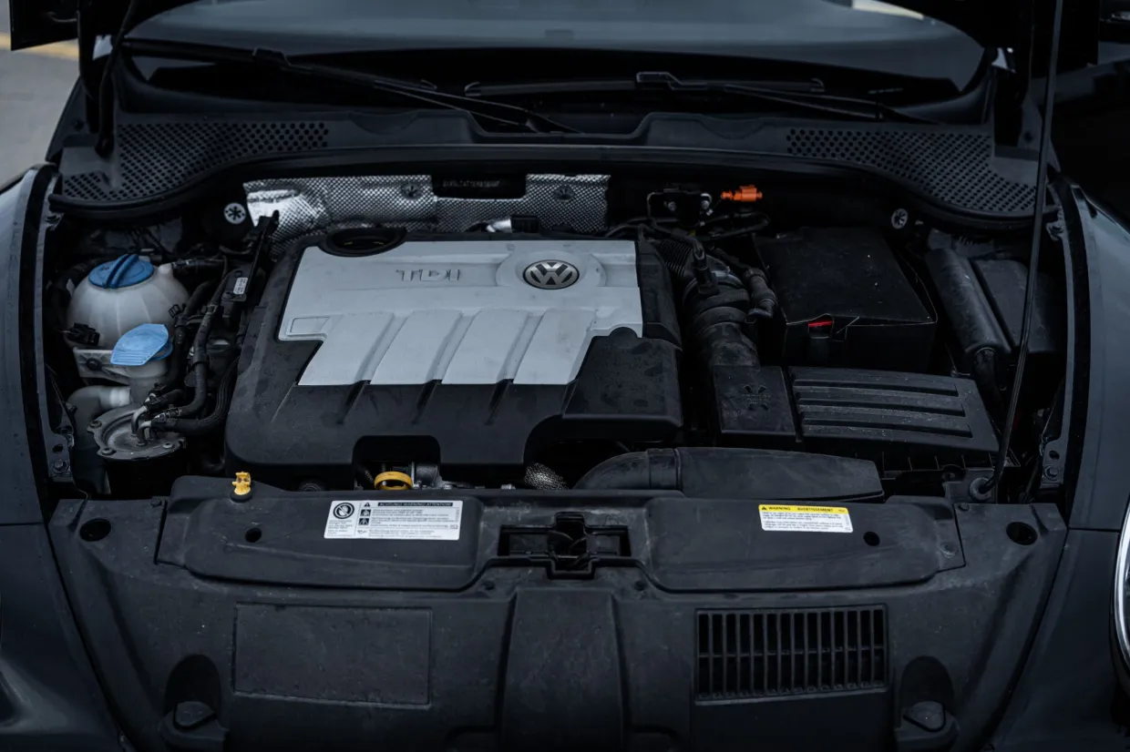 The 2.0-liter turbodiesel inline-four features four valves per cylinder and common rail direct injection, and it was factory rated at 140 horsepower and 236 lb-ft of torque, which is routed to the front wheels through a six-speed DSG dual-clutch automatic transaxle. The Carfax report has an, “EPA approved TDI emissions modification performed” entry in June 2018, and the battery was replaced in February 2025.