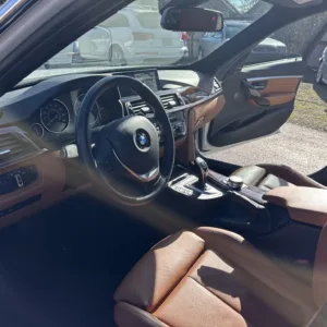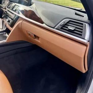 The heated power-adjustable front sport seats are trimmed in Saddle Brown Dakota leather, while wood trim accents the cabin. Appointments include cruise control, automatic climate control, a Harman Kardon sound system, Driving Assistant, and iDrive infotainment. The cabin air filter was replaced in July 2025.