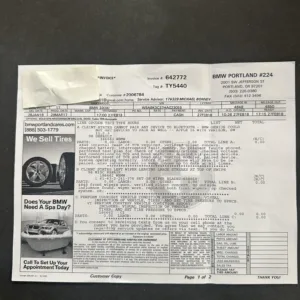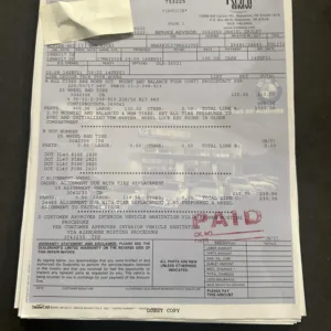 The 17″ Style 392 alloy wheels wear Mazama tires that were mounted in September 2025. Stopping power is provided by four-wheel discs. Replacement front lower control arms were fitted in July 2024.