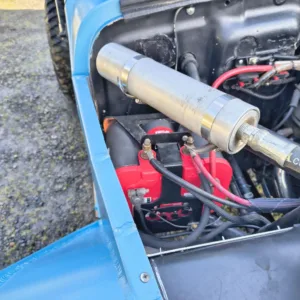 The 5.3-liter GM V8 was installed in 2020 and is equipped with an aluminum radiator, an Optima battery, and an aftermarket 25-gallon fuel cell.