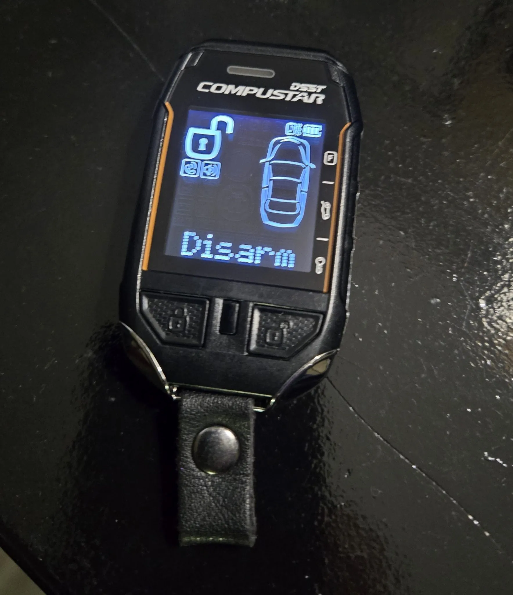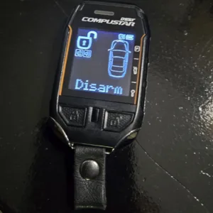 The cabin features seating surfaces upholstered in Ebony leather with Morocco inserts and piping. Interior appointments include heated power-adjustable front seats, a Monsoon sound system, an in-dash six-disc CD changer, keyless entry, cruise control, a rear-view camera, and air conditioning. The truck was retrofitted with a Compustar remote start and alarm system, but it has since been disabled. A piece of trim surrounding the shifter button is missing.