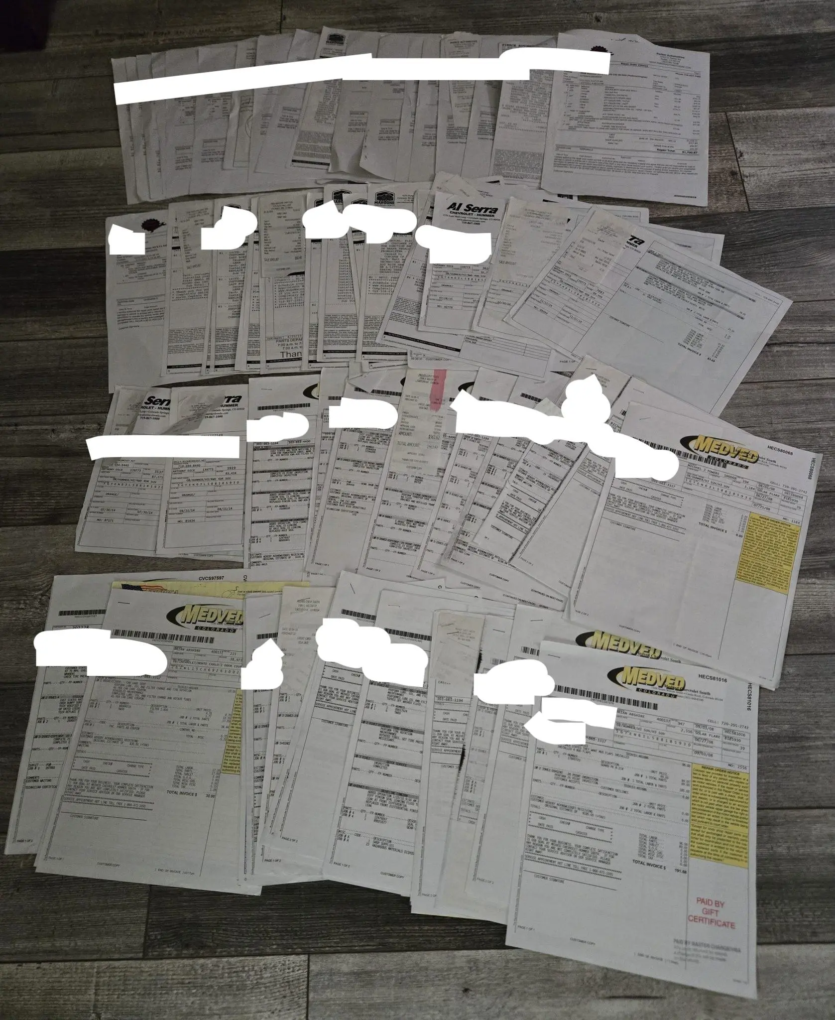 The window sticker lists initial delivery to Medved Chevrolet in Wheat Ridge, Colorado, along with factory colors, standard equipment, options, and a total vehicle price of $21,195.